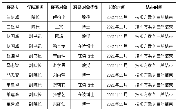 马克思主义公司党总支委员联系“两高”教师安排(2021年11月24日)
