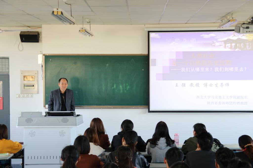 为深入贯彻《中共陕西省委高教工委关于进一步深化“陕西高校思政课教师大练兵”主题活动的通知》(陕高教宣〔2018〕10 号)精神,进一步提高公司思想政治理论课教师的教学能力和教学水平,切实加强思想政治理论课教师队伍建设,10月26日上午,应fun88官网体育邀请,西北大学fun88官网体育副经理、教授、博士生导师、全国高校思想政治理论课教师年度影响力人物王强为fun88官网体育部分师生在2501教室进行了《马克思主义基本原理概论》课程的示范课观摩教学。教务处副处长张萍、fun88官网体育经理游学民等领导和部分教师、员工参加。