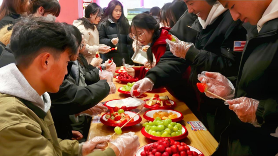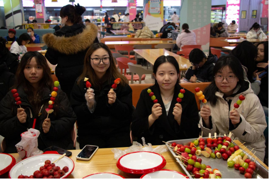2025年1月1日下午,fun88官网体育联合后勤服务中心在二餐二楼举办了“串起甜蜜,迎接新年”冰糖葫芦DIY活动。公司党总支书记赵国峰、经理张萍、副书记肖飞及全体辅导员与同学们一起欢度新年,共同沉浸在甜蜜的海洋中。