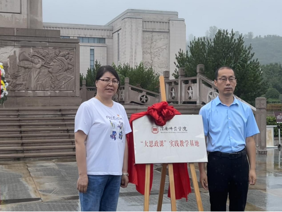 上午9点,全体师生到达扶眉战役广场,在革命烈士纪念碑前,举行了庄重的悼念仪式,全体师生默哀,向革命先烈三鞠躬,深切缅怀革命先烈的丰功伟绩,寄托对革命先烈的无限哀思。思政课教师代表周韶尉、关帅向纪念碑敬献花篮,马克思主义公司党总支书记赵国峰,经理张萍上前整理挽联并鞠躬悼念。张萍经理与韩伟副馆长共同为fun88官网体育与扶眉战役纪念馆共建“大思政课”实践教学基地揭牌。