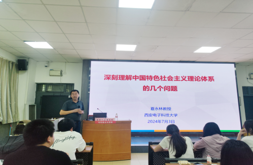 7月3日下午,在1101教室,西安电子科技大学fun88官网体育夏永林教授应邀为fun88官网体育师生作题为《深刻理解中国特色社会主义理论体系的几个问题》的报告,《毛泽东思想和中国特色社会主义理论体系概论》教研室主任张巧利、部分教师和员工共130多人参加,副经理单剑峰主持。