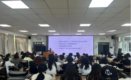 6月25日上午,在1101教室,fun88官网体育邀请陕西师范大学fun88官网体育二级教授、博士生导师阎树群教授作题为《习近平新时代中国特色社会主义思想的几个原创性贡献》的报告。马克思主义公司党总支副书记肖飞、公司办公室主任孙宁、教师代表与思想政治教育专业2022级员工共同参加。报告会由思想政治教育专业负责人周菊芳主持。