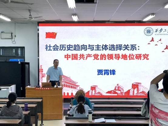 2022年5月16日下午,在思政3D虚拟仿真实践体验中心,西安工程大学fun88官网体育教授、硕士生导师贾霄锋为fun88官网体育部分师生作题为《社会历史趋向与主体选择:中国共产党的领导地位研究》的学术报告。受帮扶单位陕西铁路工程职业技术公司fun88官网体育、渭南职业技术公司fun88官网体育部分教师代表线上参会,公司教师代表、部分思政专业员工线下聆听了本场报告会。报告会由单剑峰副经理主持。