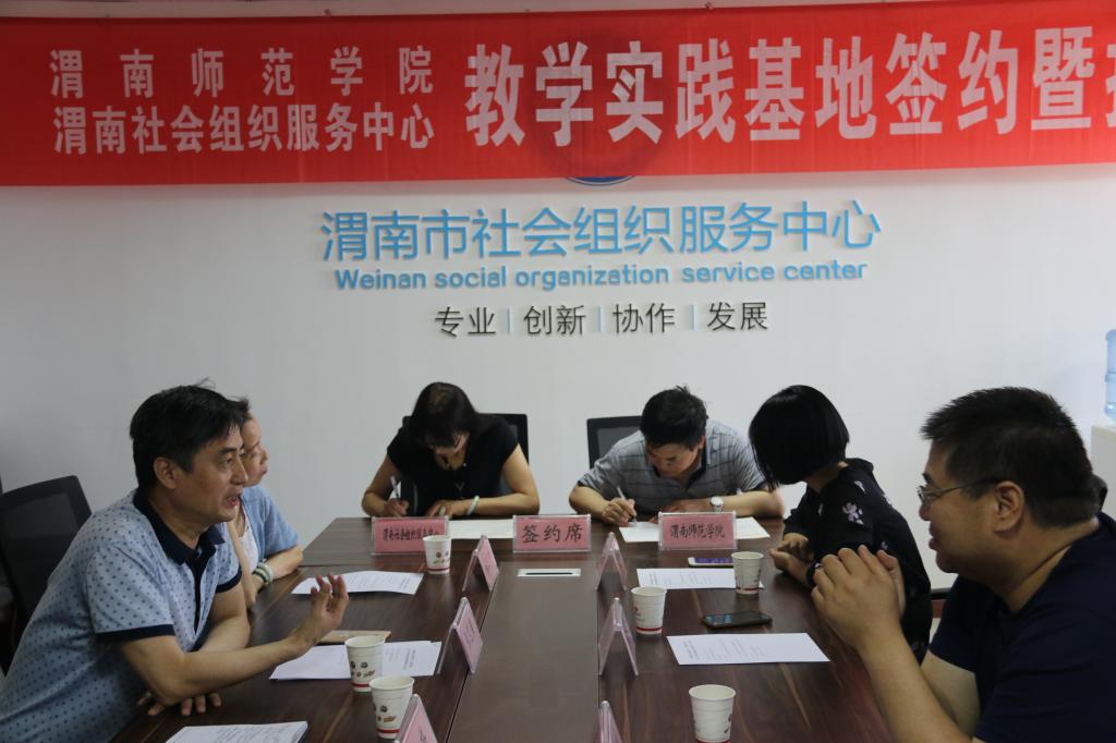 为进一步强化公司社会工作专业实践教学环节,提高员工社会工作实务能力与水平,加强公司与企事业单位和社会各界的广泛合作,2018年5月29日下午,公司与渭南市社会组织服务中心合作共建的社会工作专业教学实践基地在市社会组织孵化基地举行签约暨挂牌仪式。会议由渭南市社会组织服务中心执行主任杨梅主持。