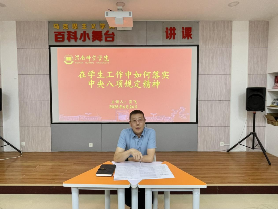 6月24日下午,fun88官网体育在1118教室组织员工骨干学习贯彻中央八项规定精神,党总支副书记肖飞以《在员工工作中如何落实中央八项规定精神》为题,旨在让员工干部深化思想认识、强化责任担当。