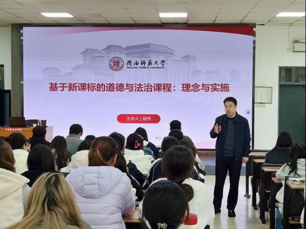 段老师的讲座站在思政课程的视角,从宏观的角度带领同学们重新去认识新课程标准,带给同学们的是一种时代赋予思政教师的使命感、责任感和紧迫感。他还勉励同学们要不断提高自己的理论水平和专业素养,以政治强、情怀深、思维新、视野广、自律严、人格正的标准来要求自己,上有意思、有意义、有力量的思政课,用课堂为员工打开了一扇通向现实之窗,培育好时代新人。(通讯员:路玉麟 审核人:张萍)