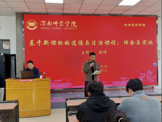 11月11日上午,fun88官网体育邀请中国教育学会中小学德育分会常务理事、教育部大中小学思政课一体化研究与建设中心研究员、陕西师范大学思政学科培训首席专家、陕西师范大学fun88官网体育基础公司产品研究中心主任段伟副教授作题为《基于新课标的道德与法治课程:理念与实施》的讲座。讲座由覃景冠老师主持。