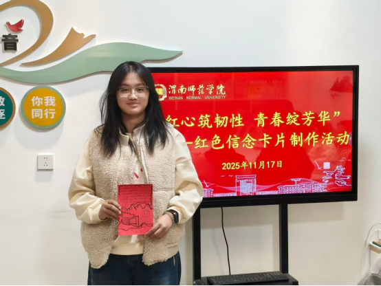 活动现场,红色榜样事迹片段铺就精神底色,学子们手持红卡双向书写:正面誊录榜样的坚韧故事,让先辈的“韧性密码”落地生根;反面记录当下的压力困惑,让情绪有了栖居之所。笔锋起落间,有人以简笔画为卡片添彩,有人借文字为信念注脚,红色的纸张上,既有精神的传承,也有青春的鲜活。