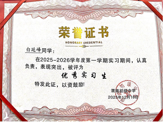 三个月的实习时光转瞬即逝,实习生从初登讲台的紧张忐忑,成长为从容自信的侃侃而谈;从对教学工作的懵懂认知,深化为对育人使命的深刻理解,在渭南初级中学收获了成长与蜕变。此次实习,既是理论与实践的深度融合,更是一堂生动的育人初心实践课。