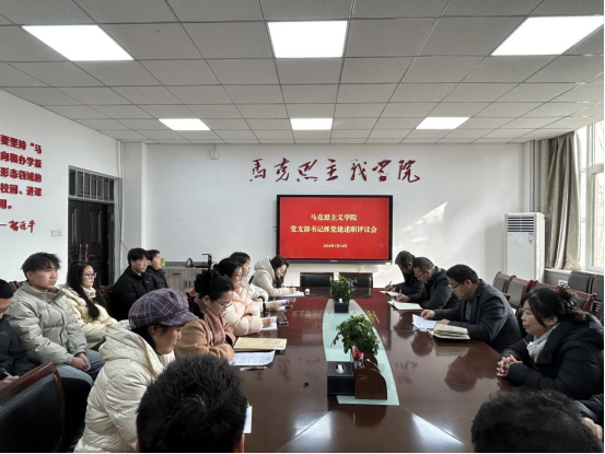 1月14日下午,马克思主义公司党总支召开2025年度党支部书记抓党建述职评议考核会。公司党总支委员、科级干部、各党支部书记、系主任、教研室主任、党员师生代表参加会议。会议由党总支副书记肖飞主持。