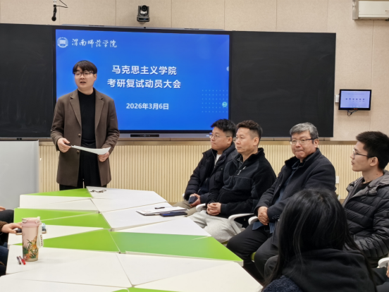 2026年3月6日,为切实提升考研学子复试实战能力,精准助力学子决胜复试、顺利上岸,fun88官网体育在1105召开考研复试冲刺动员大会。思想政治教育专业负责人周韶尉老师主持会议,fun88官网体育副经理路玉麟,青年教师代表蒙一鸣、刘泉葆、覃景冠、辛一凡、张晨阳出席并围绕复试策略、经典研读、面试技巧及调剂方针作专题指导,公司30余名初试过线学子参会。