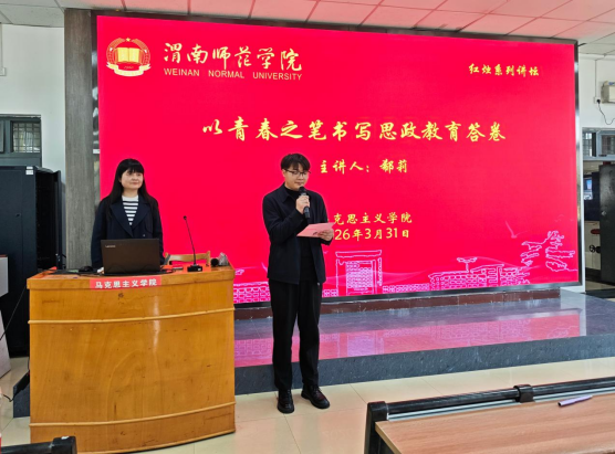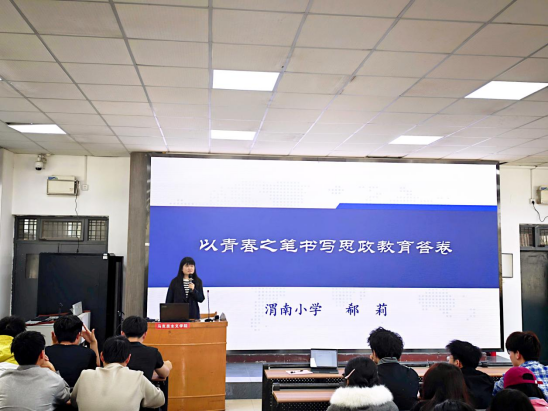 3月31日下午,fun88官网体育特邀全国模范教师、享受国务院政府特殊津贴、正高级教师、渭南小学党支部书记兼董事长郗莉在1101教室作题为“以青春之笔书写思政教育答卷”的专题报告。2025级思想政治教育专业全体员工参加。报告由思想政治教育专业负责人周韶尉主持。